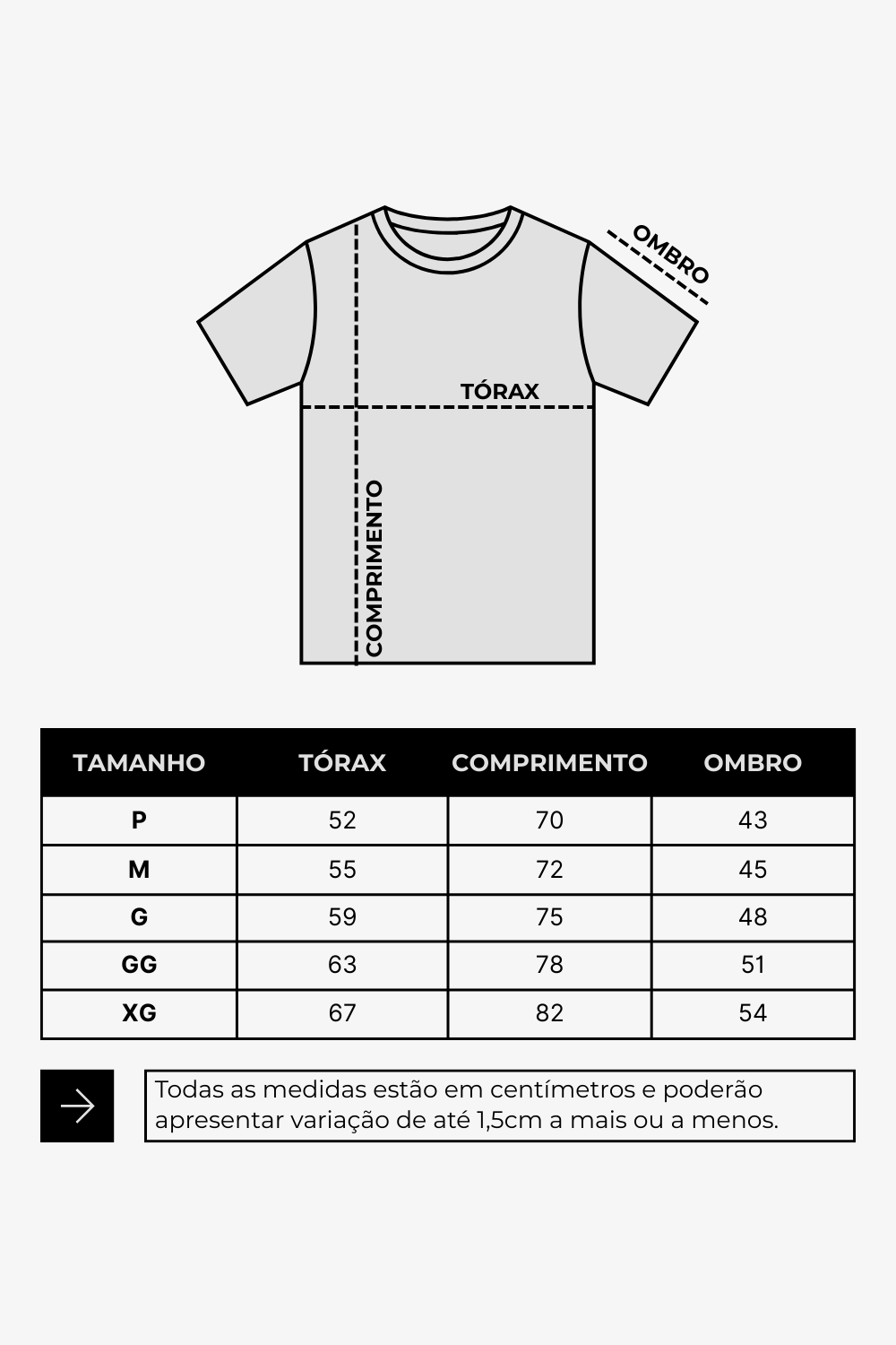 Consulte o guia e caso fique na dúvida, compare as medidas com uma peça que já tenha o caimento ideal para você! É uma conferência simples que garante um ajuste preciso e torna sua experiência de compra ainda melhor!